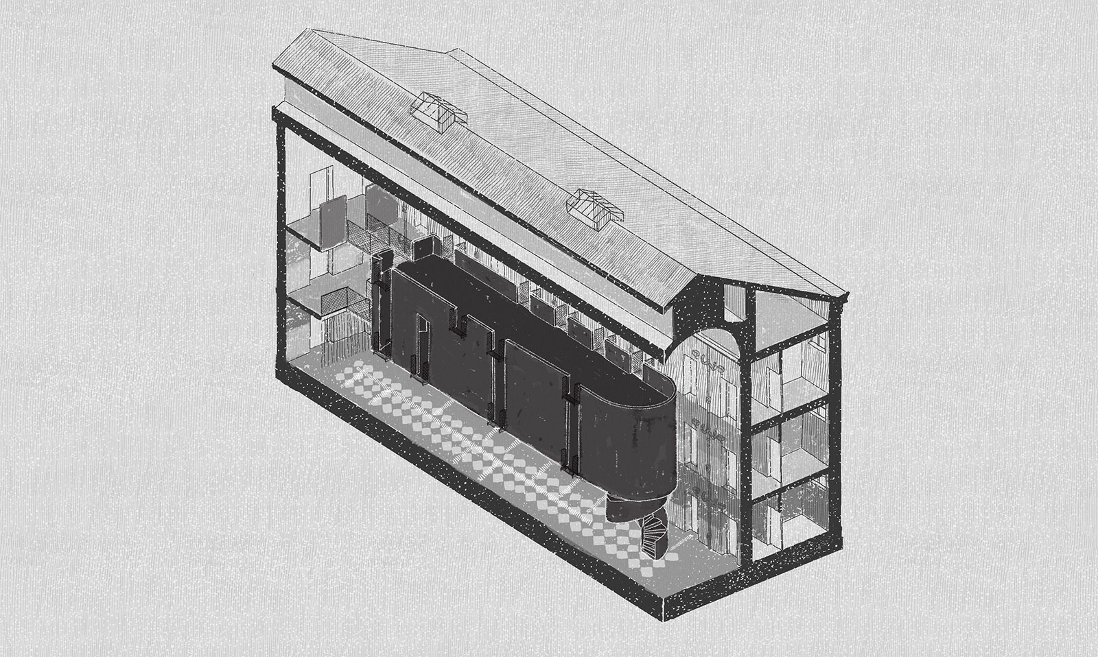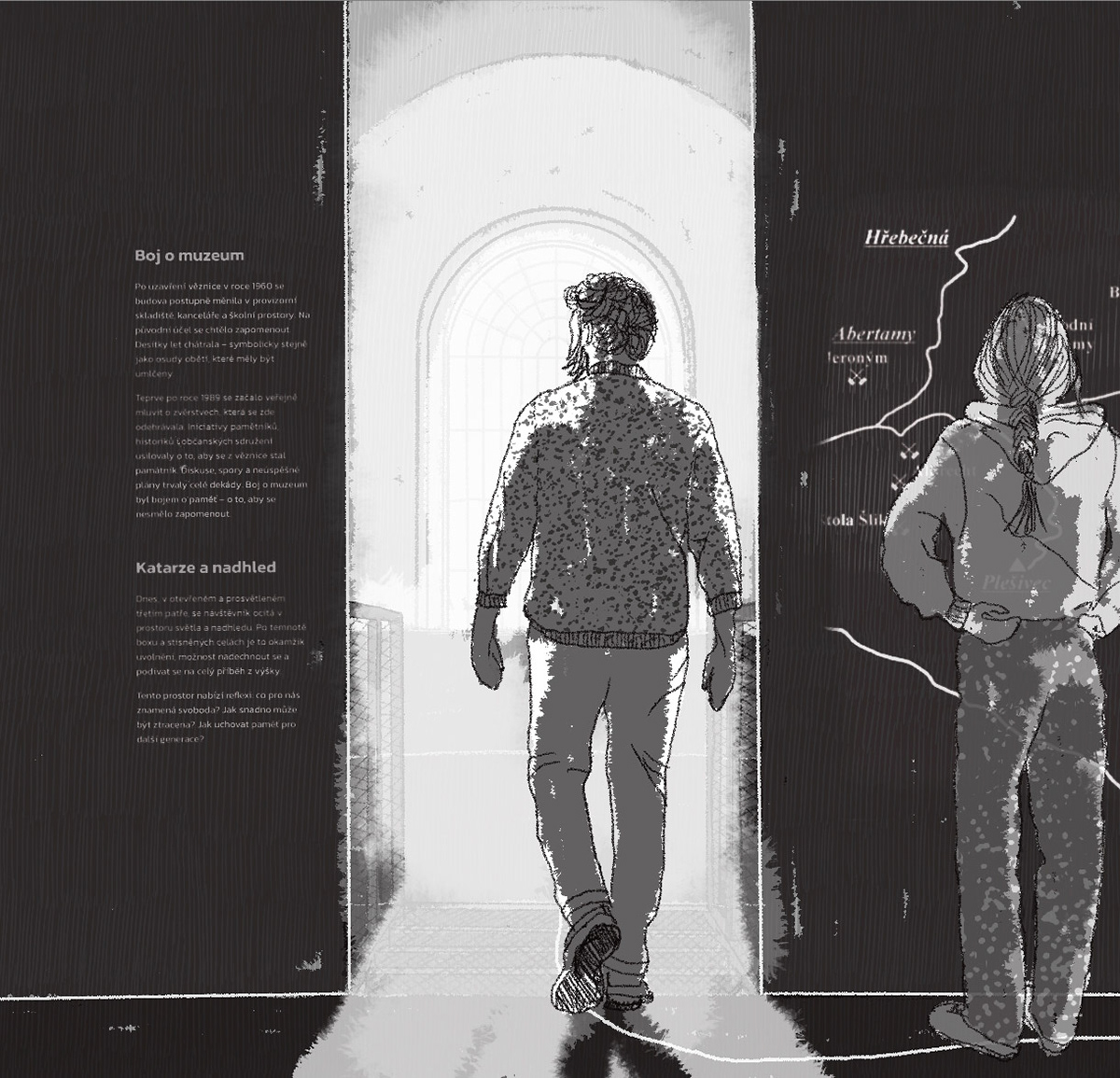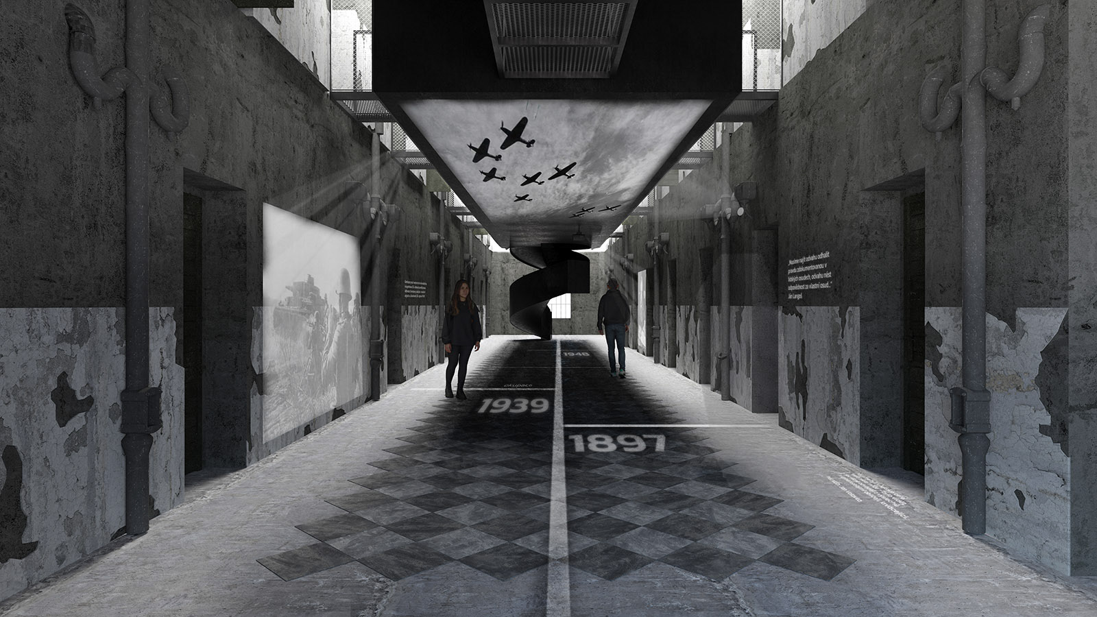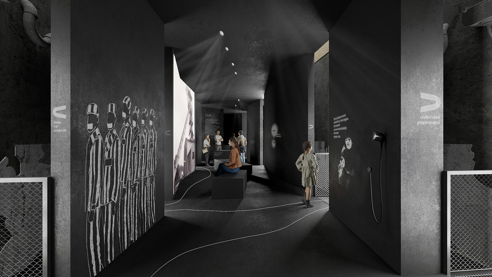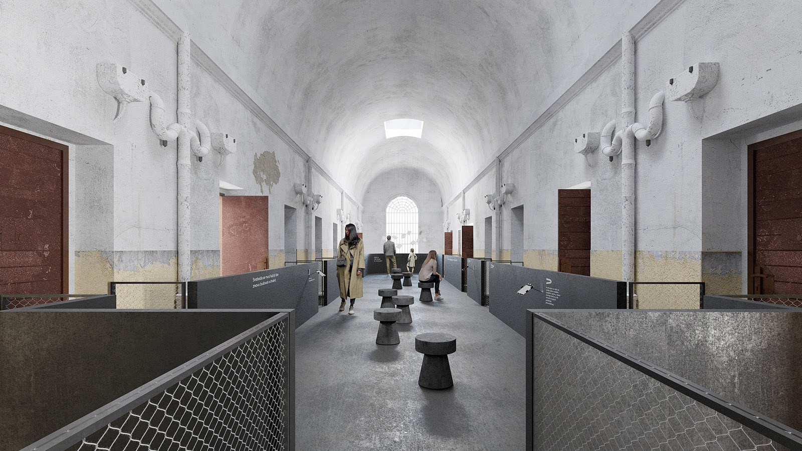 Náš přístup vychází z přesvědčení, že hlavním exponátem je samotná budova. Její syrovost, paměť a vrstevnaté stopy po historickým proměnách. Rozhodli jsme se odstranit nepůvodní železobetonové stropy, které zastírají charakter samotek s ochozy. Tento krok navrací věznici autentickou podobu blízkou stavu 50. let.
