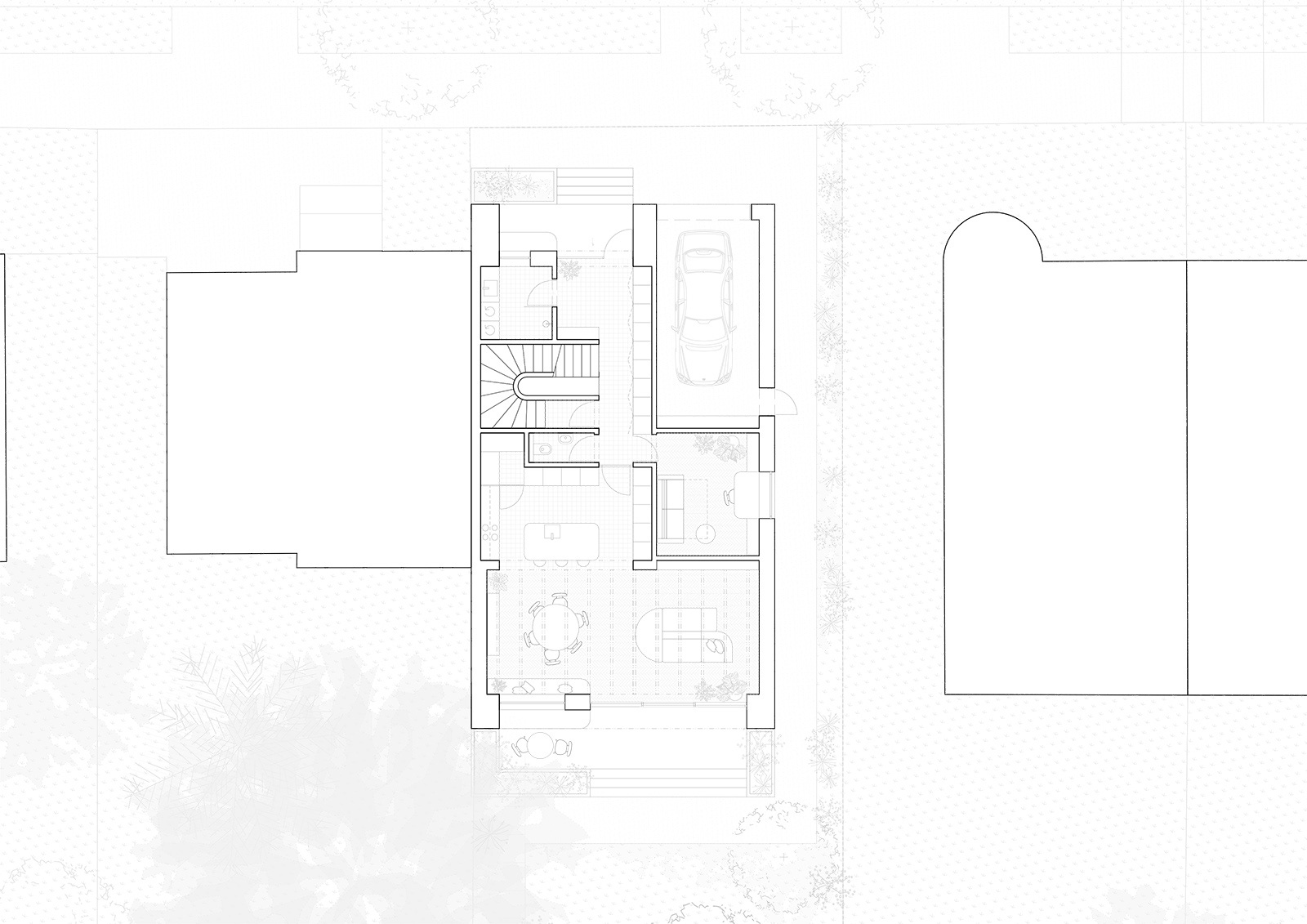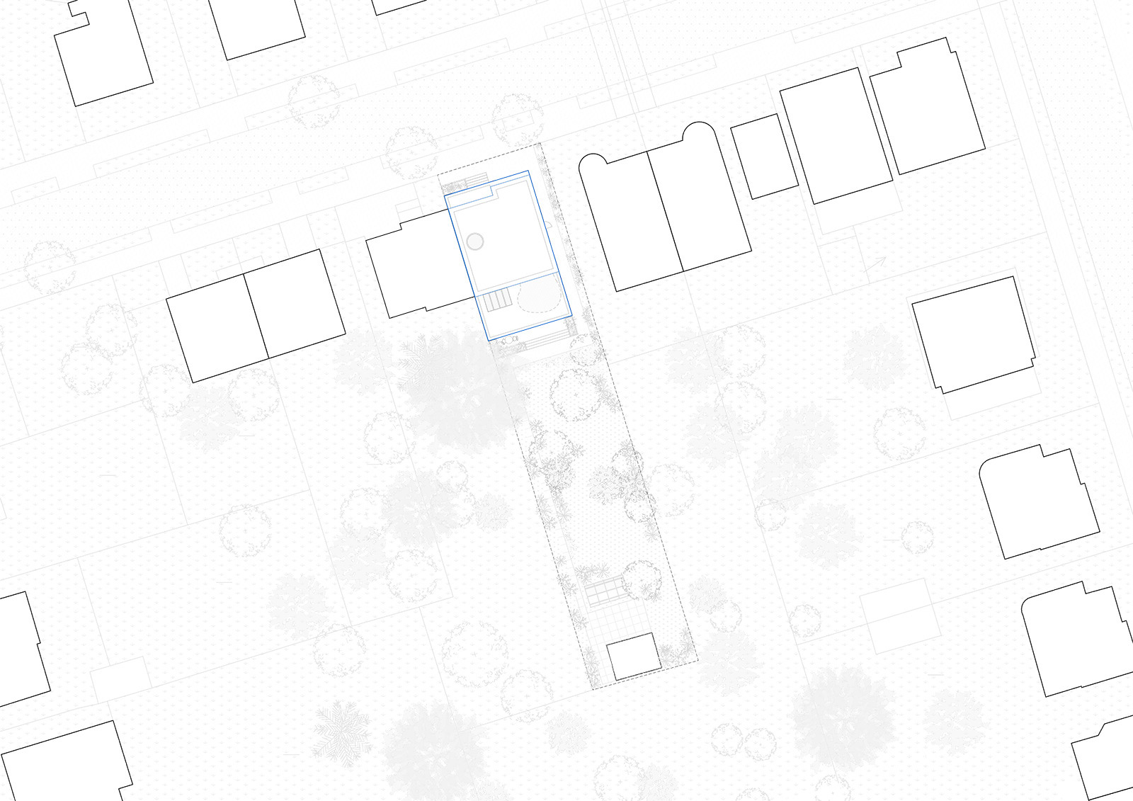 Dům vzniká jako soudobá odpověď na potřeby mladé rodiny. Je navržen na půdorysu stávajícího domu, čímž přirozeně navazuje na původní stopu zástavby a respektuje dané limity místa. Řešení je zásadně ovlivněno úzkou a dlouhou parcelou, která se stává určujícím rámcem celého návrhu.