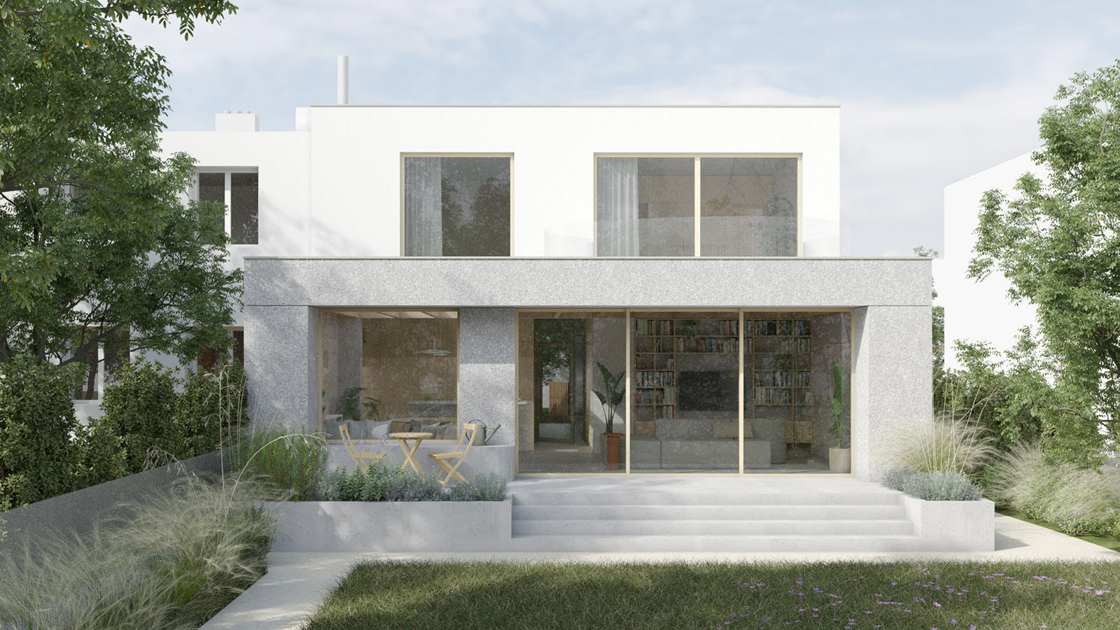 Architektura domu pracuje s čistými liniemi, proporcí a světlem. Našim cílem je vytvořit nadčasové bydlení, které respektuje kontext i omezení parcely.