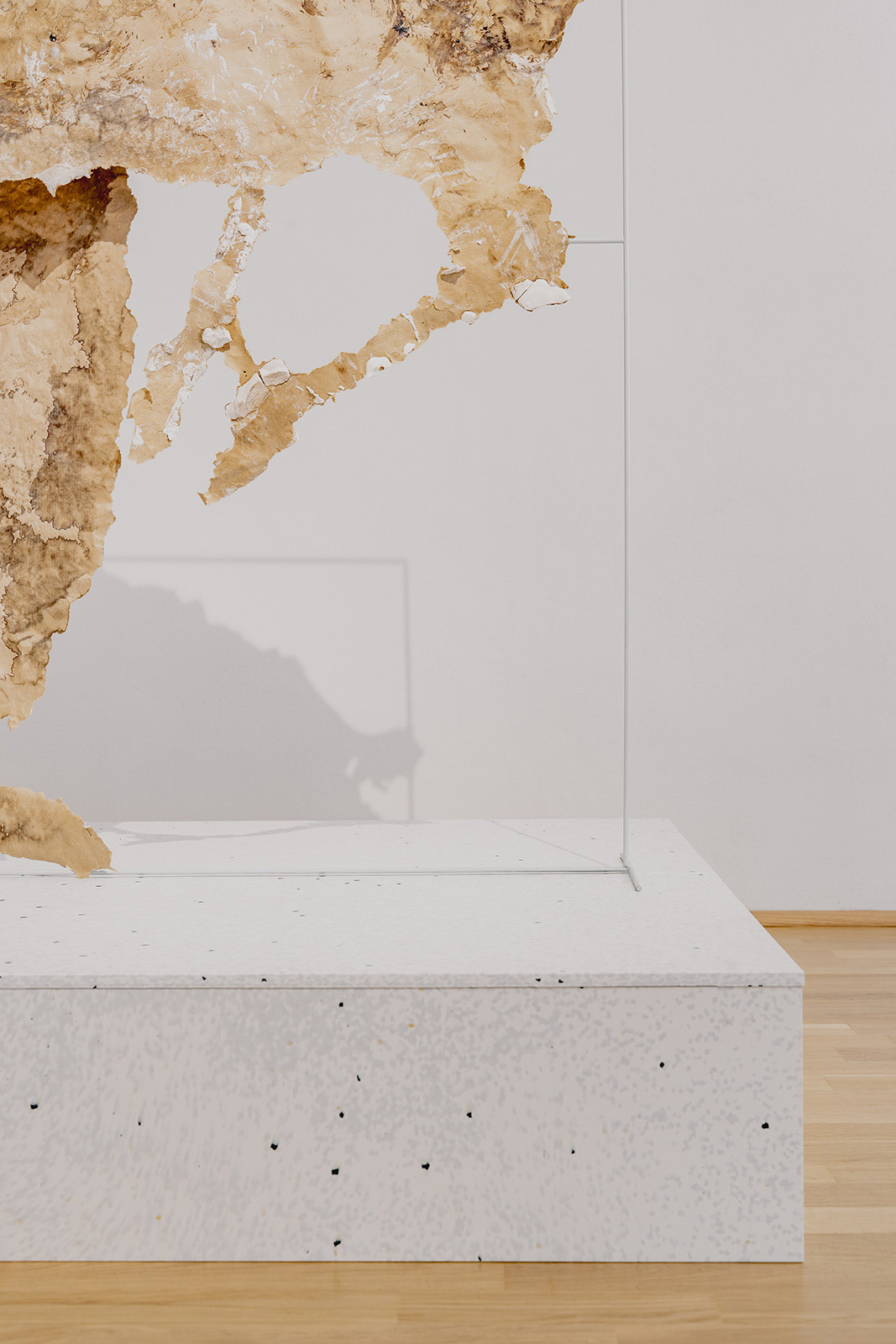 Plastový odpad je přetaven na vysoce odolné stavební desky. Ze zbytečného odpadu se stává hlavní stavební kámen expozice. Odpad tak dostává nový život, poukazuje na koloběh života i věcí.